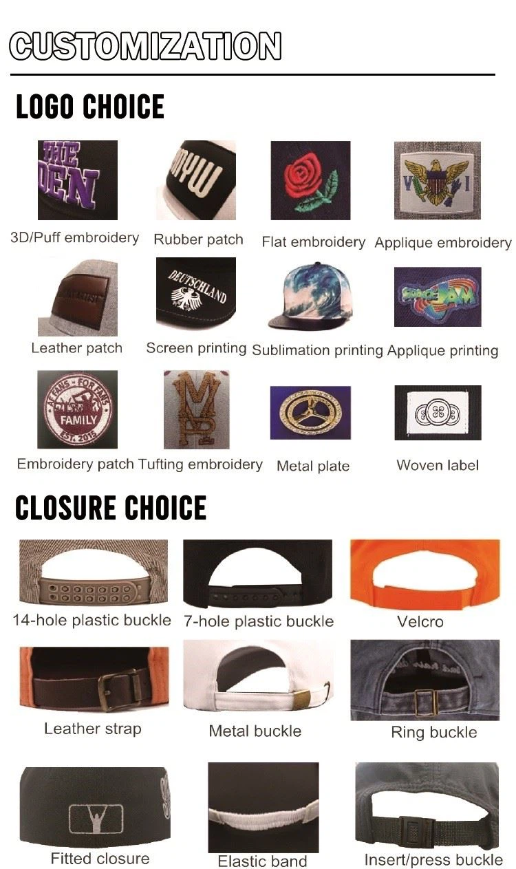 Typ czapki sportowej: Grupa wiekowa: Materiał: Styl: Miejsce pochodzenia: Numer modelu: Logo: Okres próbny: Pora roku: MOQ: Metody dostarczania: | Czapka typu snapback Dorośli ludzie 100% Jersey Postać Guangdong, Chiny starszy specjalista-014 Logo firmy 5-7 dni Wiosna Lato Jesień Zima 2 szt UPS-y FEDXE DHL | Styl panelu: Płeć: Funkcja tkaniny: Wzór: Nazwa handlowa: Rozmiar: Stosowanie: Praca: Zamknięcie z tyłu: Historia fabryki: Kolor: | 6-Czapka panelowa Dla obu płci WSPÓLNY Haftowane SUPERBAS Rozmiar dla dorosłych Zajęcia na świeżym powietrzu Niestandardowe OEM ODM Plastikowa klamra 12 lat Kolor niestandardowy |